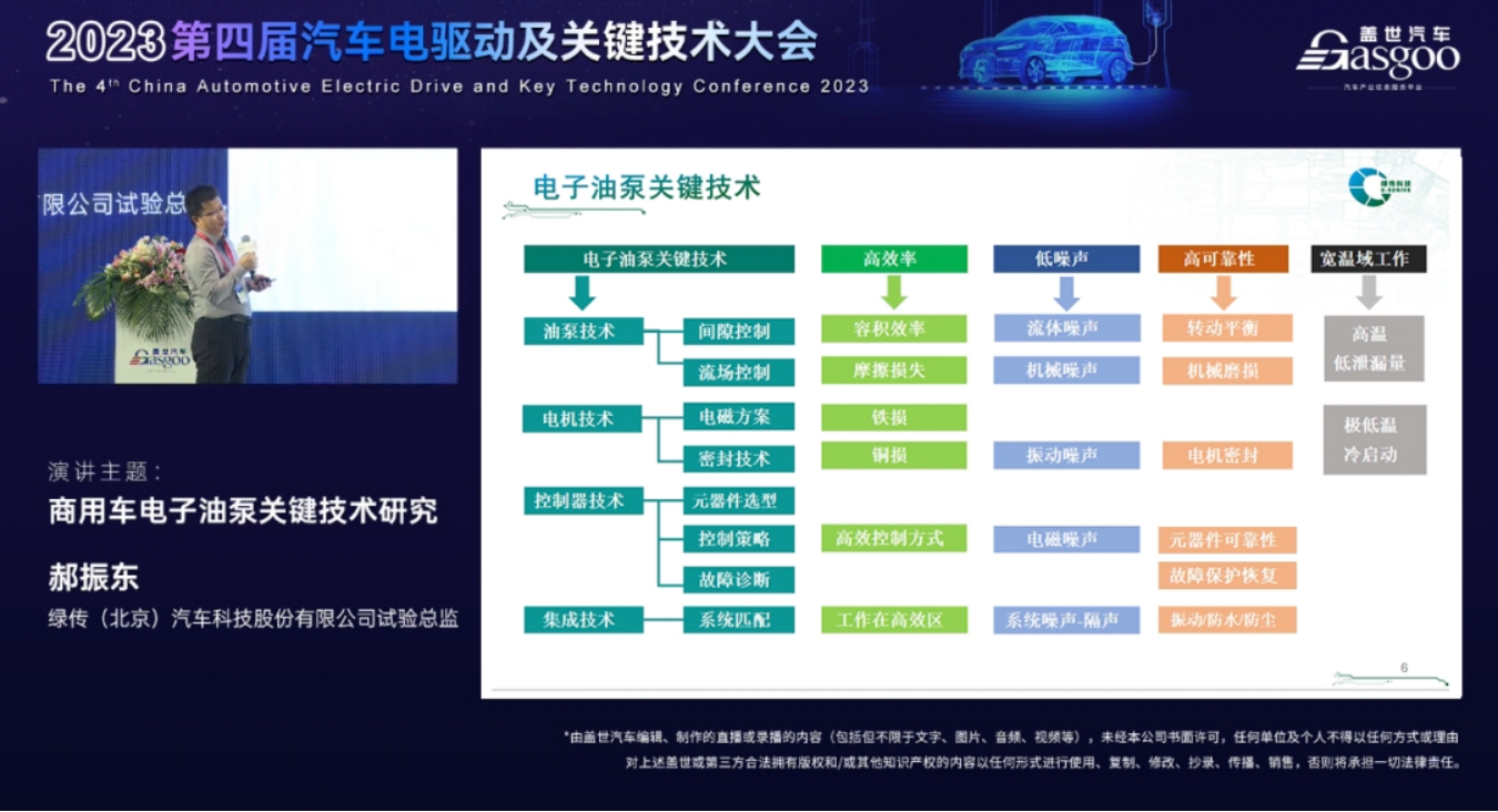 2023汽車(chē)電驅(qū)動(dòng)及關(guān)鍵技術(shù)大會(huì) 綠傳科技分享電子油泵關(guān)鍵技術(shù)方案